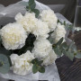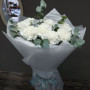 Букет из белых одноголовых хризантем и эвкалипта